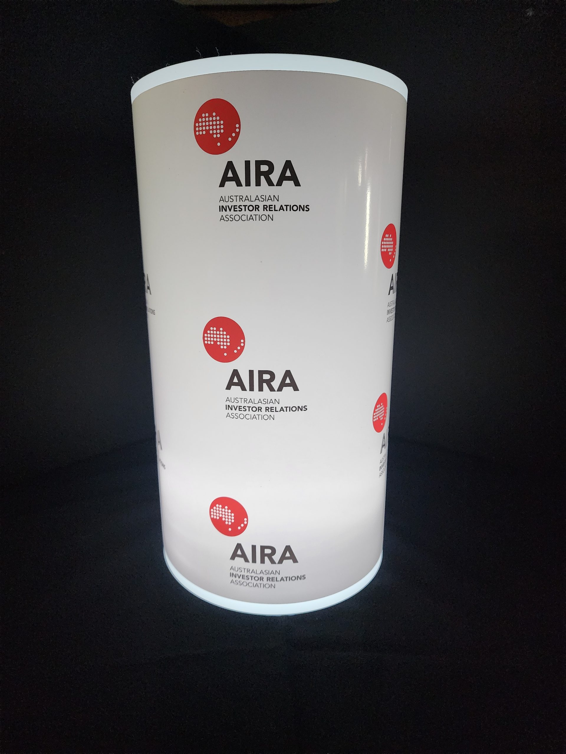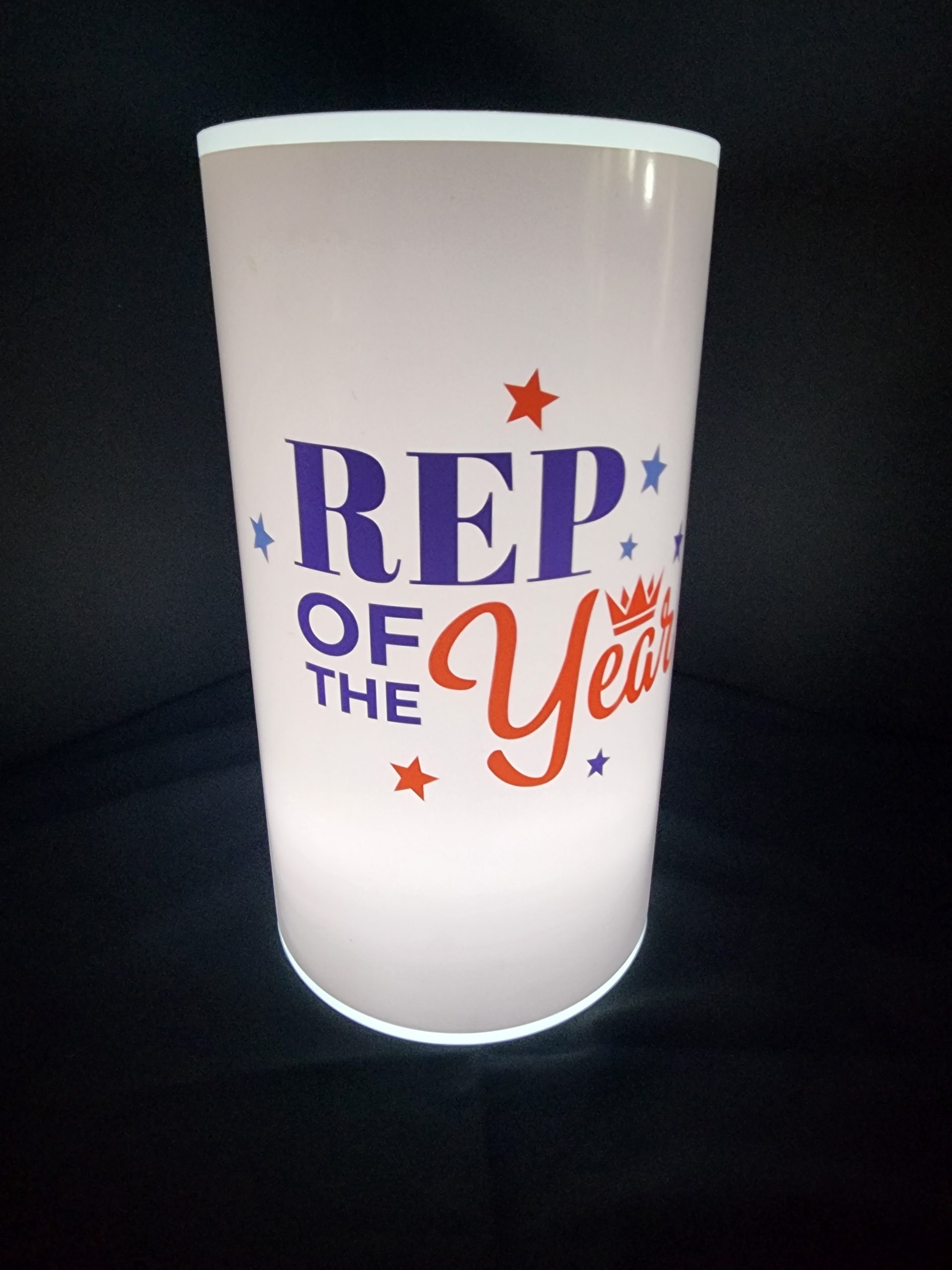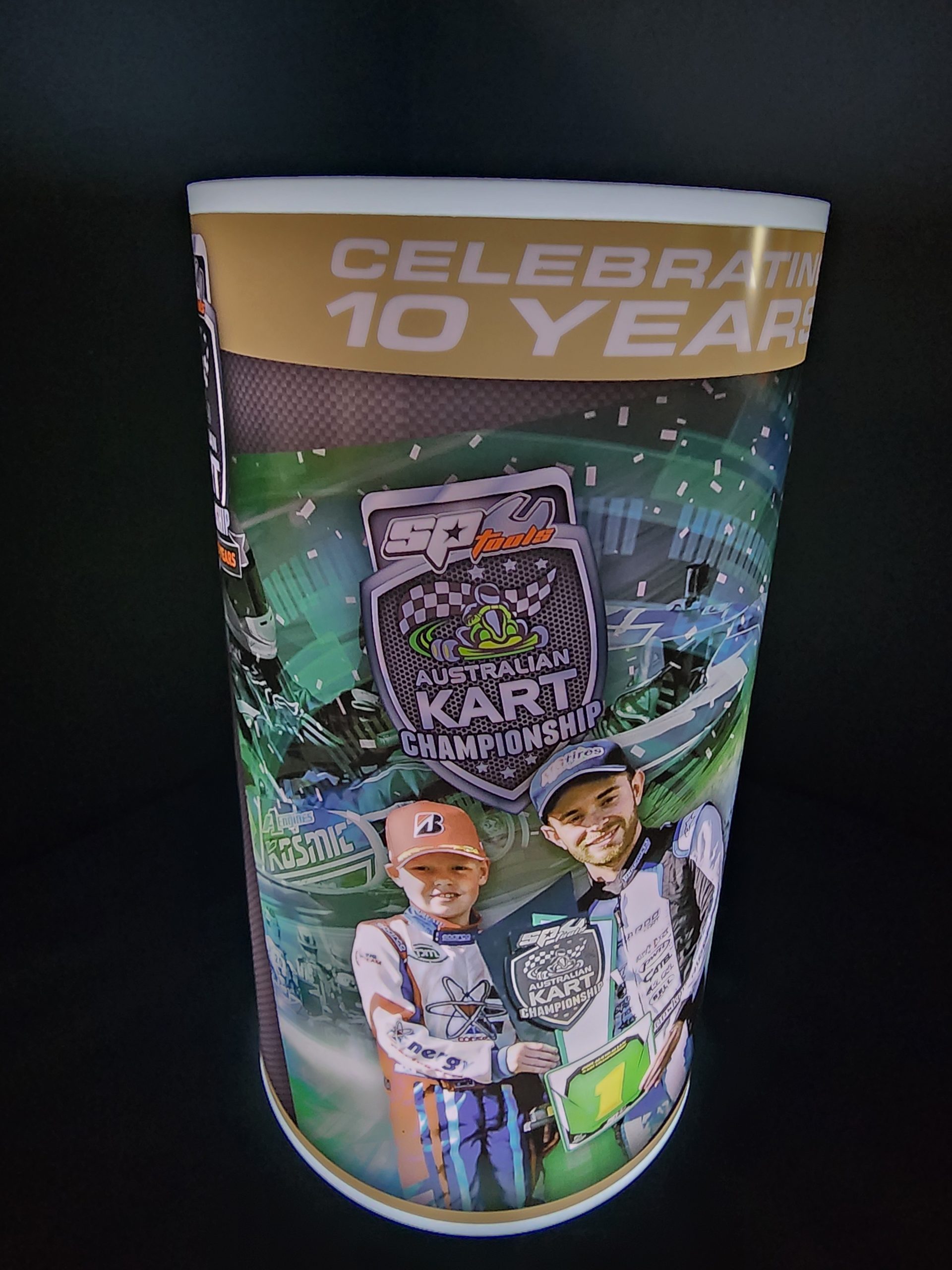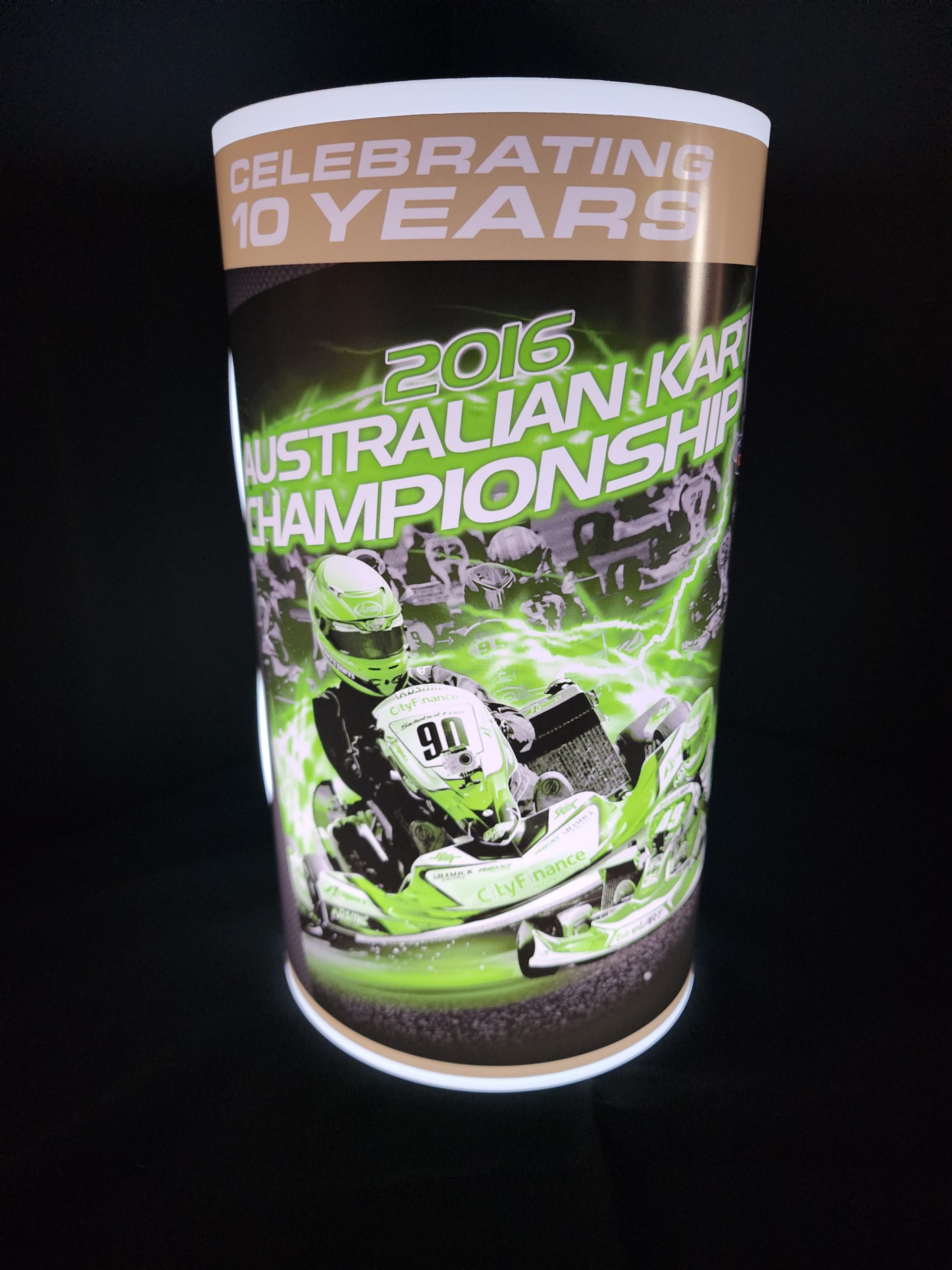 Note: cost includes the installment of your artwork, but does not include the cost of the LED Light to illuminate the cylinder. Lights are sold separately.