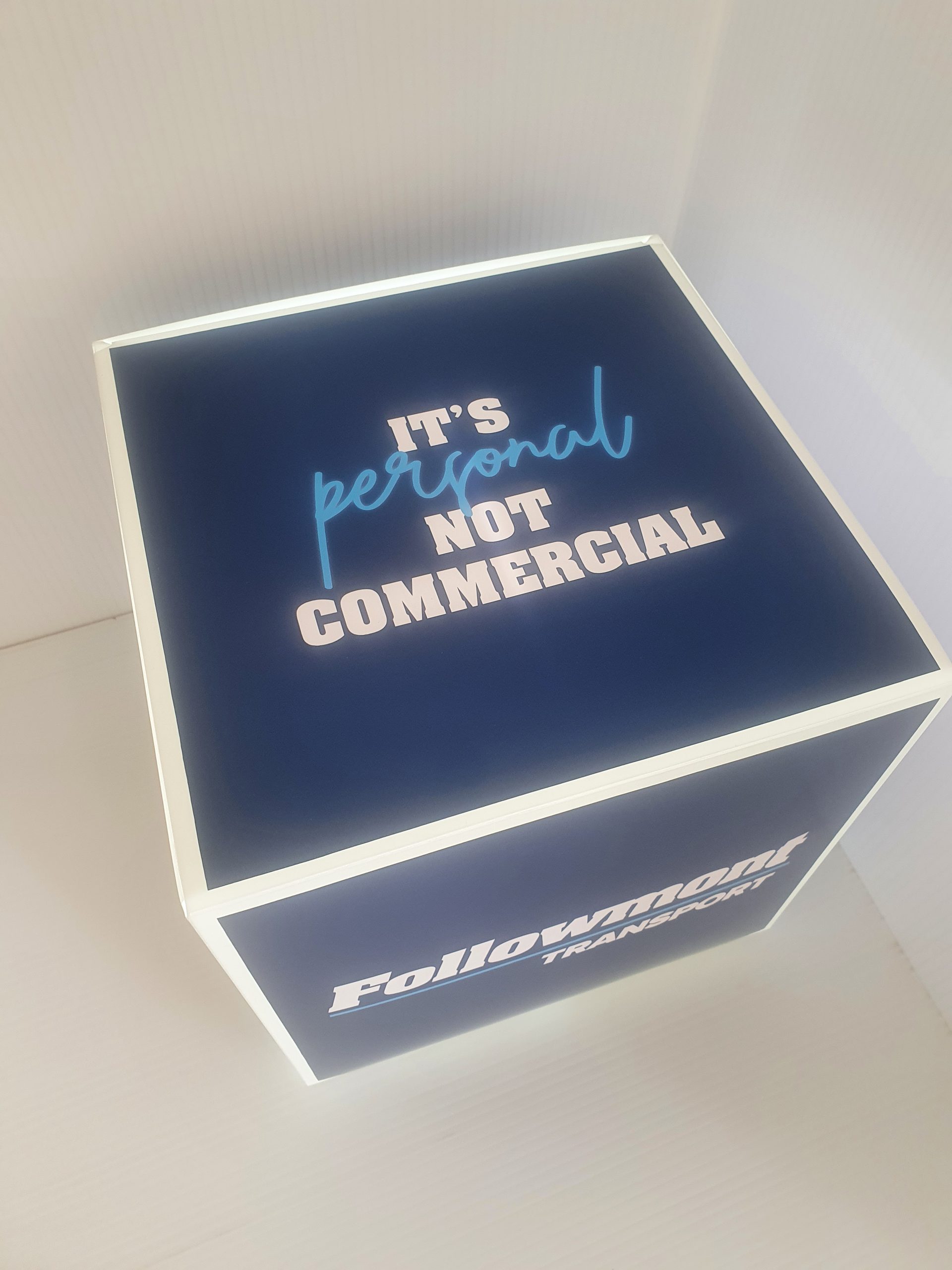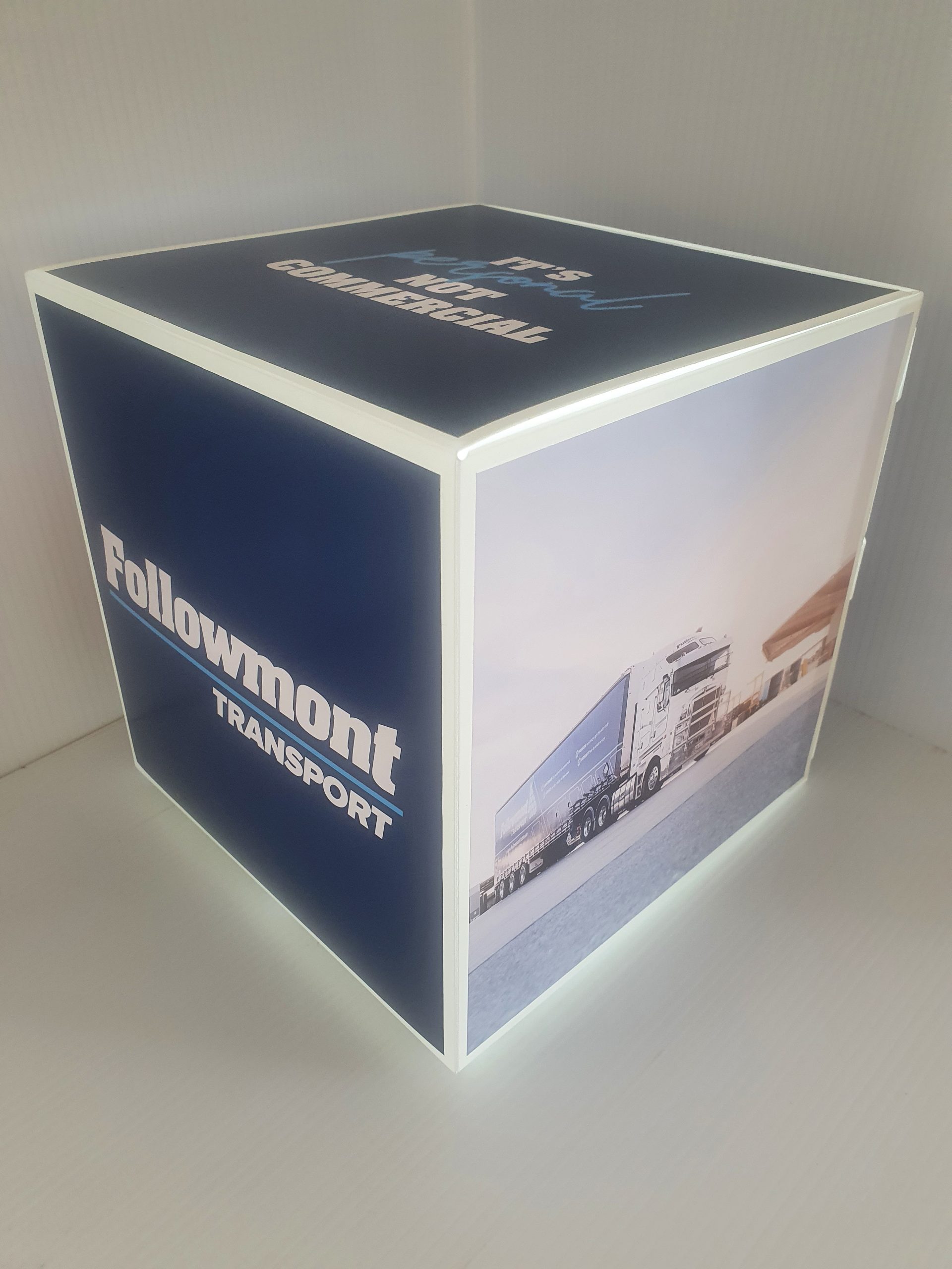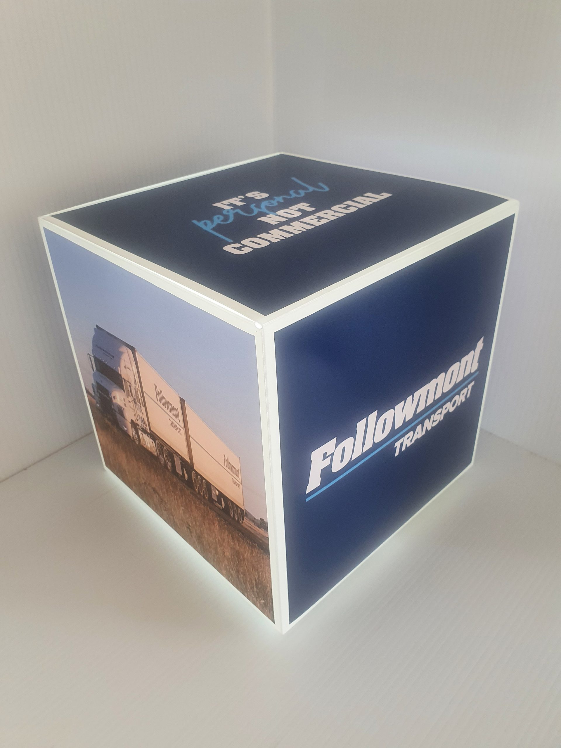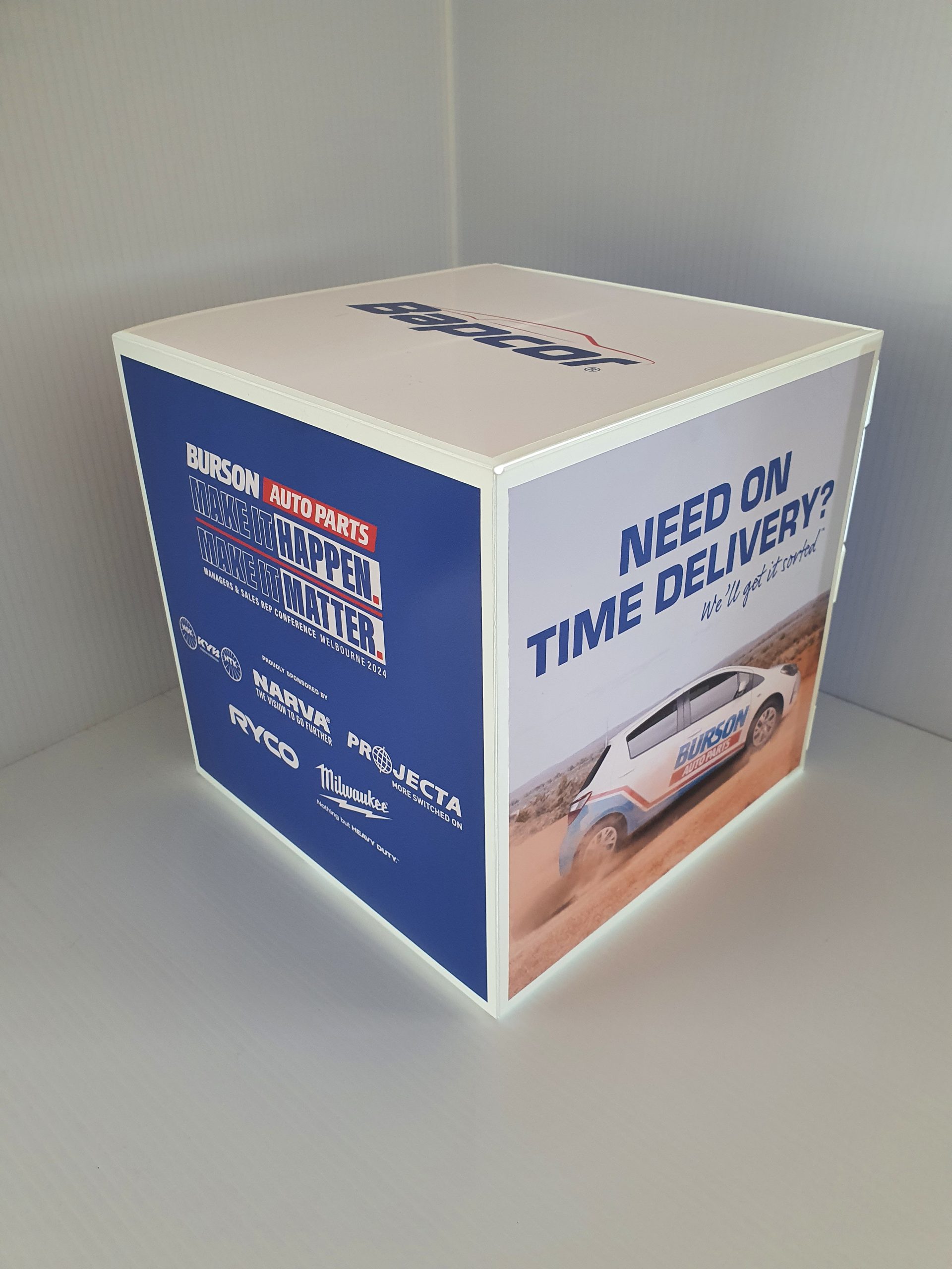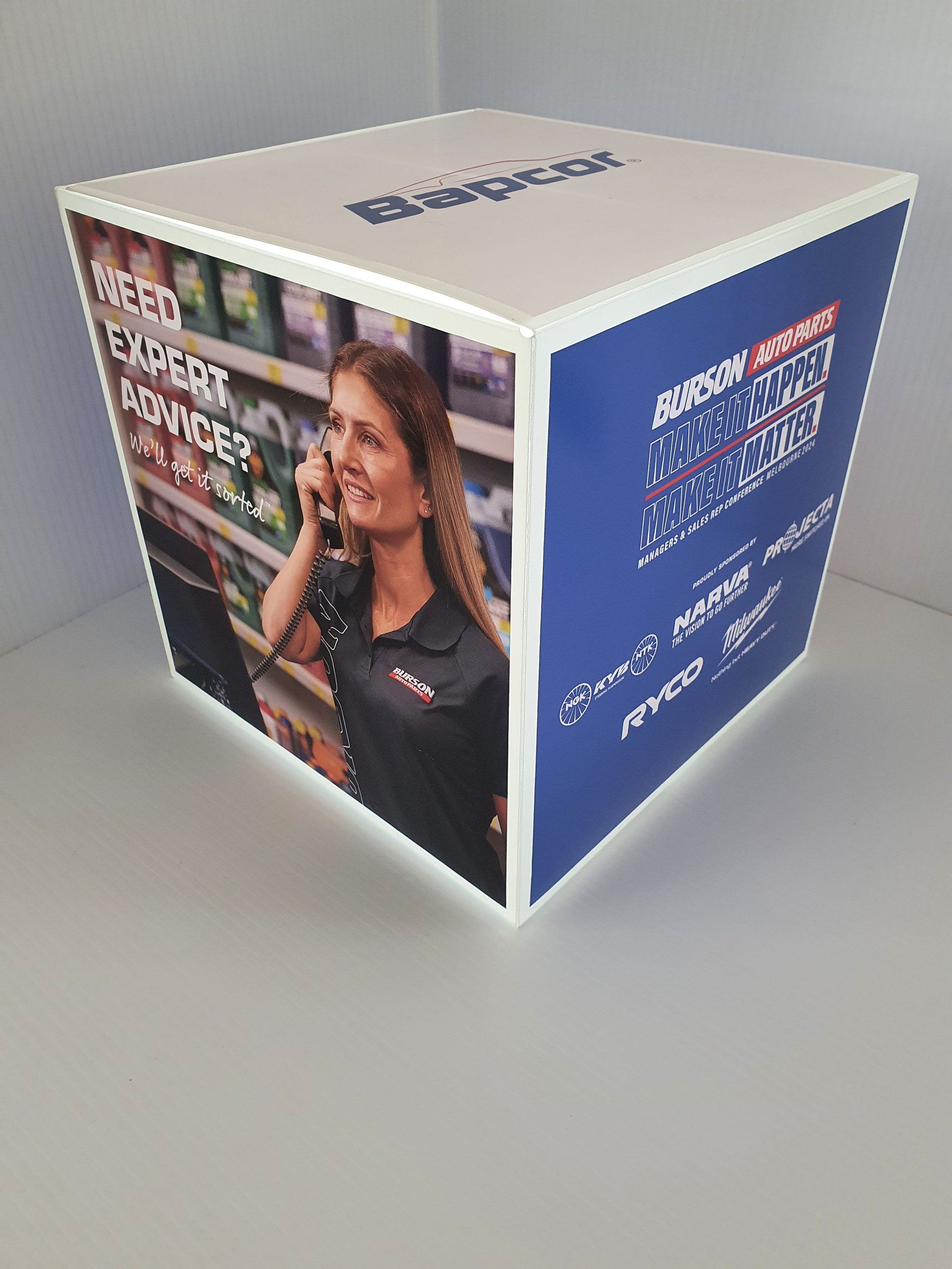 25cm square Polyprop Box for branding on all four sides and top, with different artwork per panel.